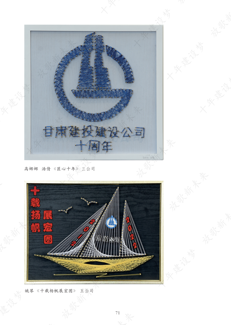 為更好聚焦企業(yè)發(fā)展變遷,深挖企業(yè)精神內(nèi)涵,引導(dǎo)全司職工從企業(yè)十年發(fā)展的歷程軌跡中汲取力量,以強(qiáng)烈的責(zé)任感和飽滿(mǎn)的精神狀態(tài)投入到各項(xiàng)工作中。根據(jù)公司黨委關(guān)于《慶祝建司十周年主題宣傳及系列活動(dòng)實(shí)施方案》的通知要求,建設(shè)公司工會(huì)組織開(kāi)展了慶祝建司十周年“征文活動(dòng)”、“第二屆職工藝術(shù)作品展”等活動(dòng)。此次系列活動(dòng)共收到140余名職工的168件作品,包括征文、書(shū)法、油畫(huà)、國(guó)畫(huà)、攝影、十字繡、剪紙、小制作等十多個(gè)種類(lèi)。最終經(jīng)過(guò)各基層工會(huì)主席評(píng)選確定入冊(cè)作品155件,其中攝影作品38件、書(shū)法作品38件,美術(shù)作品26件,手工作品17件,征文作品36篇。這些作品創(chuàng)意新穎,主題突出,內(nèi)容豐富,充分體現(xiàn)了企業(yè)精神譜系和廣大職工的精神面貌,從不同角度展示了全司廣大職工的聰明智慧和藝術(shù)才華,反映了職工們心系企業(yè)、愛(ài)崗敬業(yè)、構(gòu)建和諧社會(huì)的熾熱情懷。